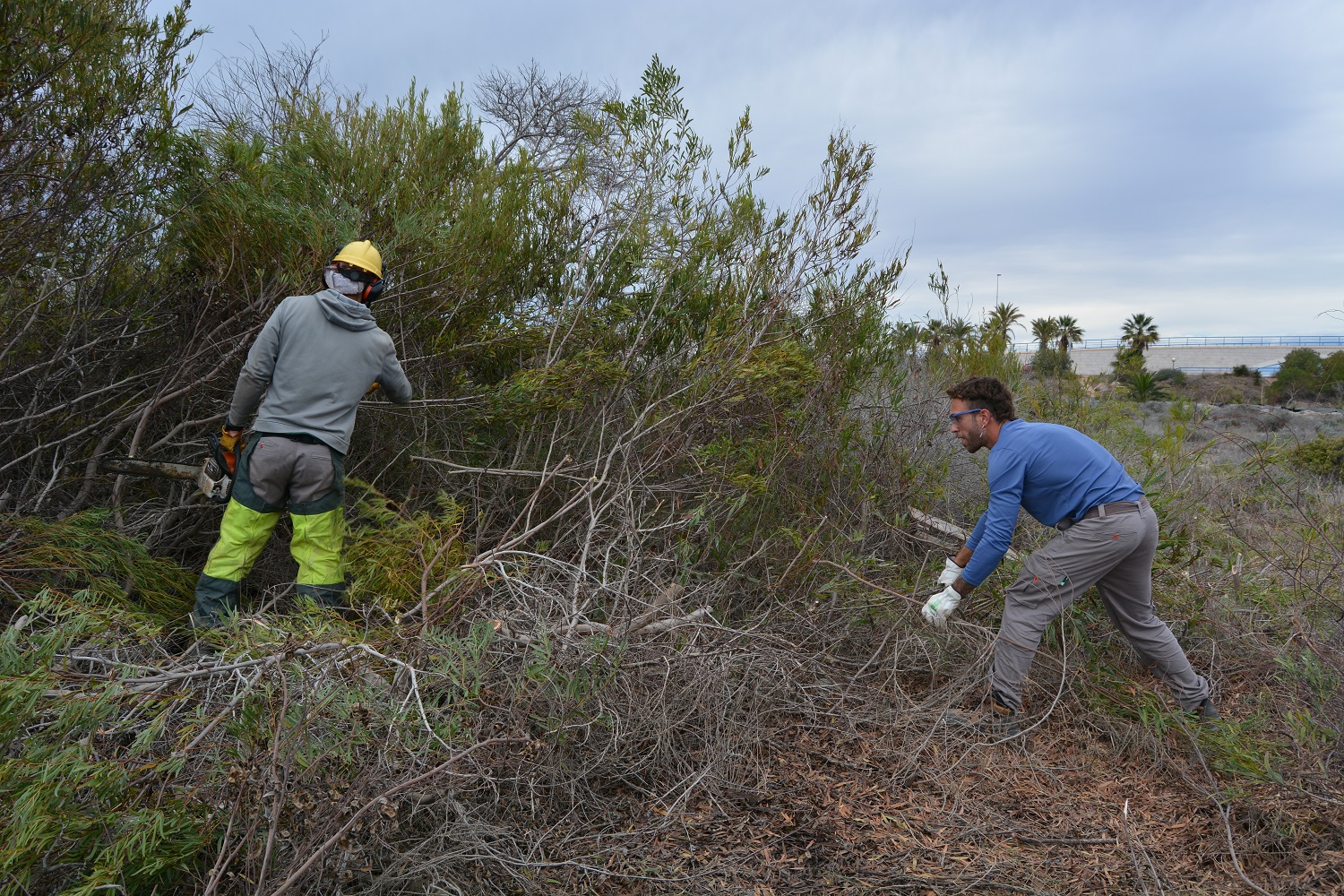 La reciente retirada de unos 2.000 m2 de lámina plástica de parte de los arenales, tras un largo periodo de solarización de más de 1 año, ha dejado paso a un arenal libre de acacias, donde se está procediendo a la plantación de especies autóctonas propias de los otros extensos arenales y dunas de La Manga, como son la adormidera marina (Glaucium flavum), el cuernecillo de mar (Lotus creticus), la sisca fina (Saccharum ravennae), el junco (Scirpus holoschoenus), el junco espinoso (Juncus acutus), el chuzo (Cyperus capitatus), la siempreviva (Helichrysum stoechas), el hinojo marino (Crithmummaritimum), el pasto niño (Sporobolus pungens) y el taray (Tamarix gallica).
